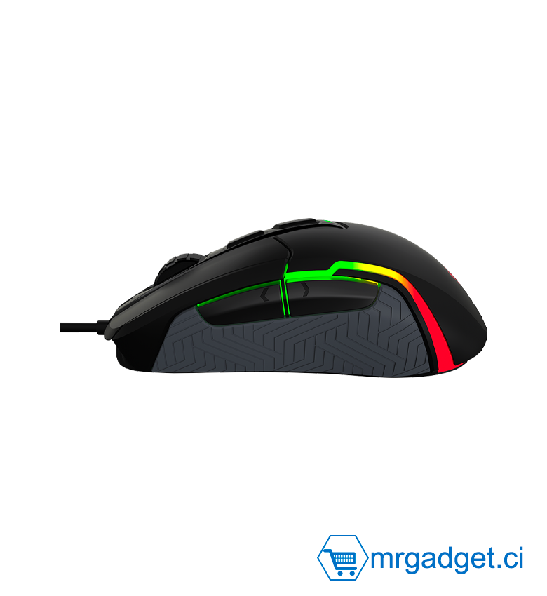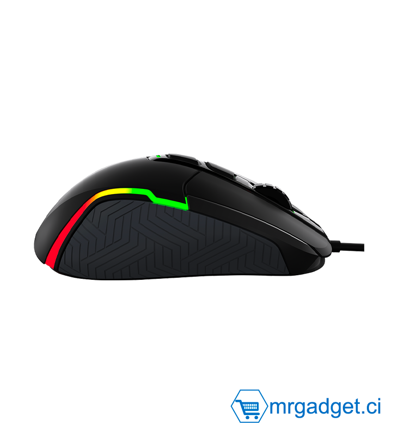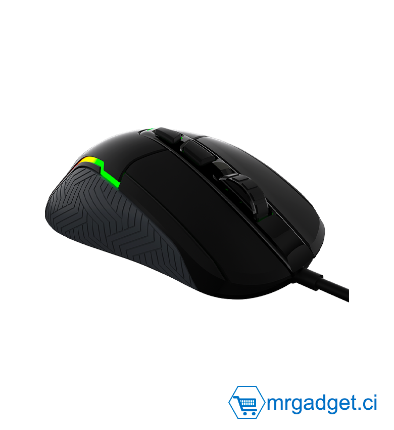 Look cool et conçu pour les jeux. La conception simplifiée améliore l'adhérence. Capteur optique haute résolution de 12 000 dpi, la résolution peut être modifiée par le logiciel du pilote. Le rétroéclairage et les touches supplémentaires vous permettent de profiter de la commodité du contrôle dans n'importe quel jeu. Les capteurs de jeu fonctionnent sur n'importe quelle surface. Le bouton de changement de DPI vous permet de régler la vitesse de déplacement de la souris et un indicateur de couleur vous rappelle les paramètres actuellement utilisés. La conception de la poignée latérale antidérapante sur les côtés gauche et droit n'est pas facile à glisser, ce qui peut aider efficacement les joueurs à améliorer leur précision.