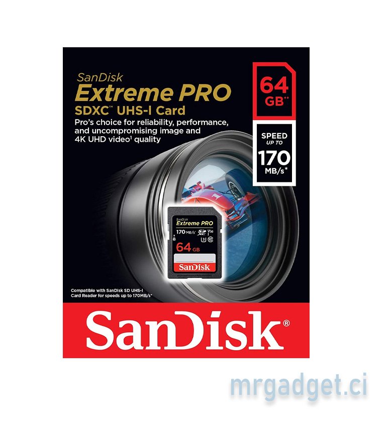 SANDISK - Carte mémoire SDXC SanDisk Extreme PRO 64 Go jusqu'à 200 Mo/s, UHS-I, Classe 10, U3, V30
