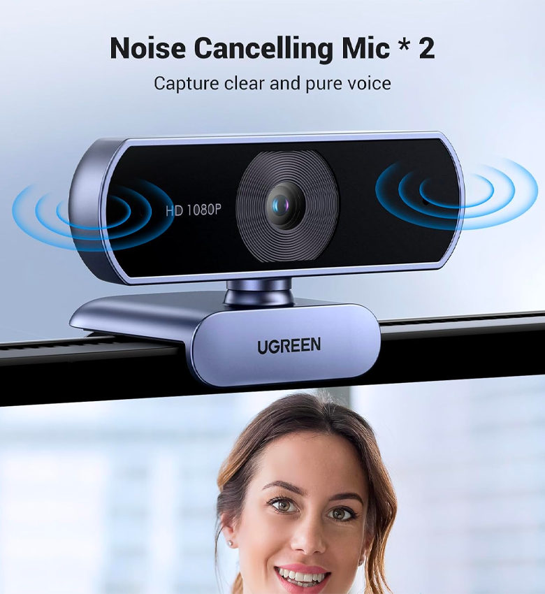 - Microphones intégrés 2 antibruit: la webcam UGREEN pour PC est équipée de mini-microphones intégrés pouvant capter le son jusqu'à 3 m. La caméra d'ordinateur dispose d'une réduction de bruit numérique en 2D, qui filtre le bruit environnemental pour garantir un son clair pendant les appels vidéo ou les enregistrements, rendant chaque appel plus naturel et plus clair.