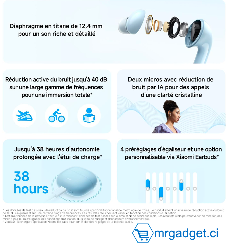 Xiaomi Redmi Buds 6 Lite Écouteurs sans Fil, Annulation de Bruit, légers, jusqu'à 36 Heures d'autonomie, Bluetooth 5.3 - Blanc