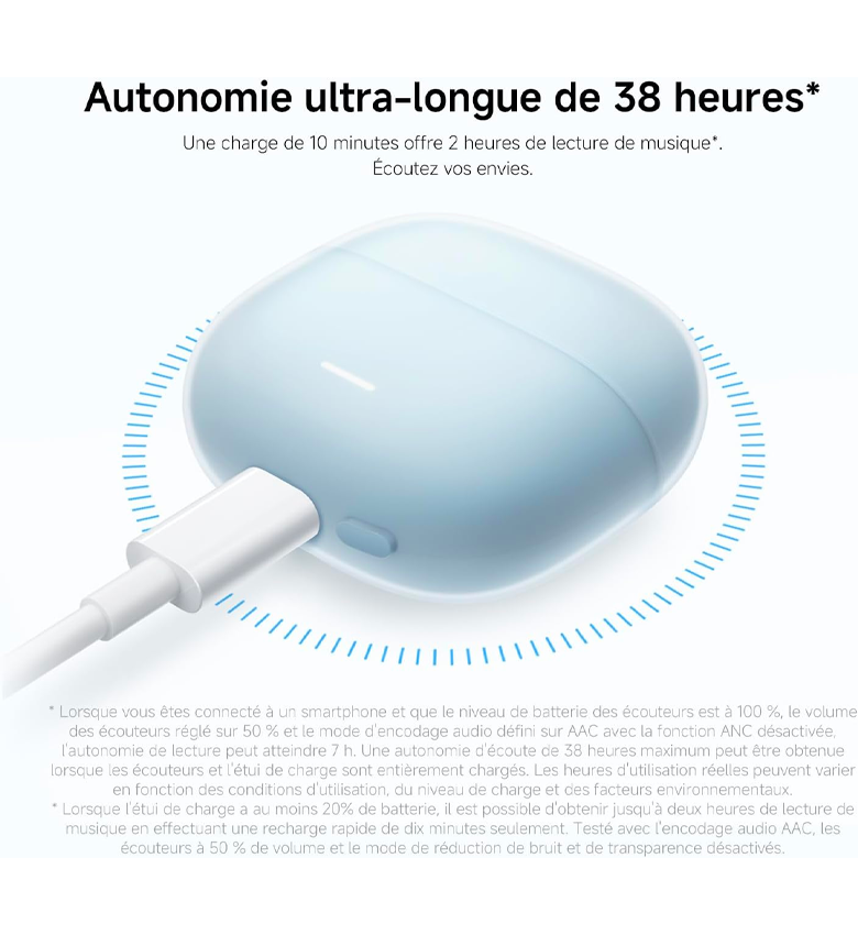 | Composants inclus | Coussinet d'oreille, Manuel d'utilisation, Mode d'emploi (français non garanti), Étui de chargement sans fil |