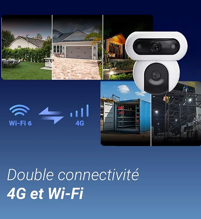 | Angle PT | Objectif supérieur : panoramique : 220°, inclinaison : 10° ; objectif inférieur : panoramique : 324°, inclinaison : 90° |