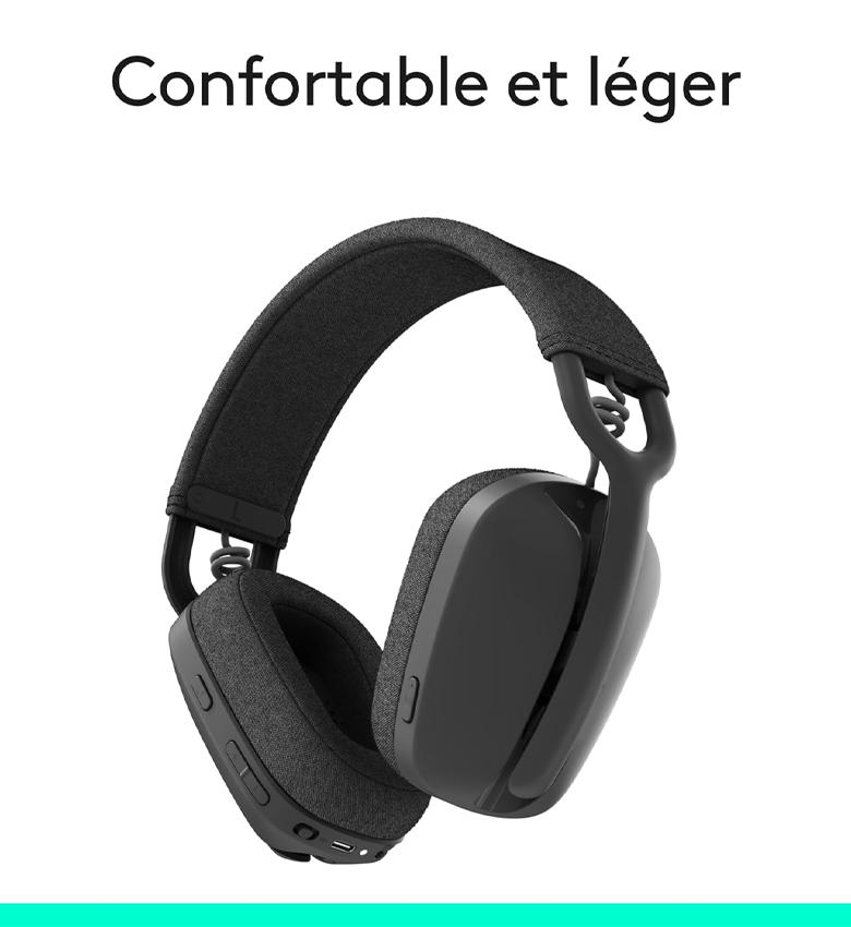 Casque Bluetooth Logitech Zone Vibe 100 - Micro à Réduction de Bruit Escamotable - Autonomie 20h - Ultra Léger (185g) & Confortable - Compatible Zoom, Google Meet, Teams - Son Immersif pour Télétravail et Musique - Éco-conçu - Noir