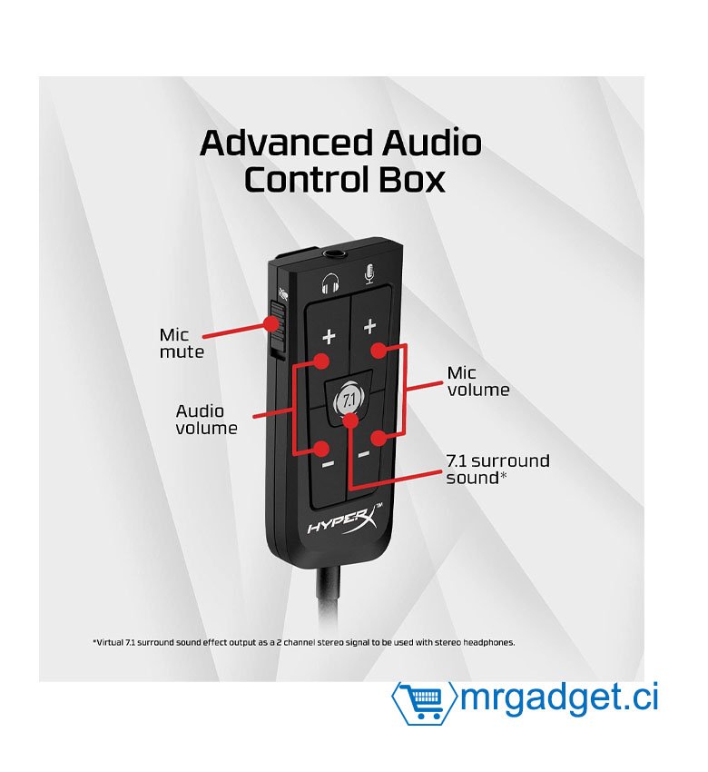 Grâce à la nouvelle conception de son boîtier de commande audio USB et sa carte son intégrée, HyperX Cloud II amplifie l'audio et la voix pour créer une expérience de jeu Hi-Fi optimale. Vous serez toujours certain de tout entendre. Vous accédez à un monde de détails que les autres gamers ne connaîtront jamais : le bruissement d'une botte dans les feuilles, une course furtive dans une conduite. Les commandes indépendantes permettent de régler le volume de l'écoute et le niveau du micro. Vous pouvez aussi activer le son Surround 7.1 ou le micro.