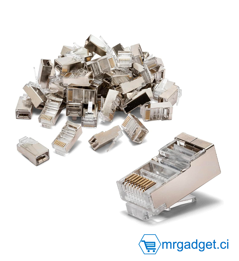 Lot de 100 Connecteur RJ45 CAT6A FTP (Blindé) - Blindé RJ45 Fiches Crimps pour Cat5e/Cat6 Ethernet câble [100 Paquet de] [Shielded (FTP) 100 Pack]