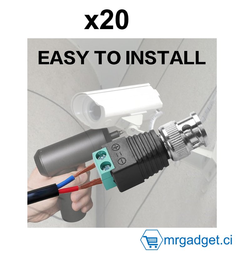 - Connecteur balun mâle BNC pas besoin de souder, facile à utiliser, c'est une solution parfaite pour ceux qui veulent fabriquer un câble d'alimentation personnalisé. Plus facile pour l'installation de la caméra de vidéosurveillance, gagnez du temps et une connexion de câble plus sûre.