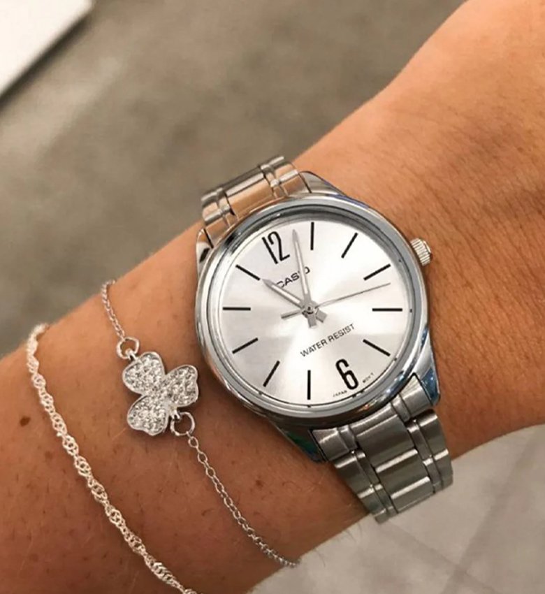 MONTRE-BRACELET FEMME CASIO COLLECTION LTP-V005D-7BUDF – BRACELET GRIS EN ACIER INOXYDABLE – RÉSISTANTE À L’EAU #CF17