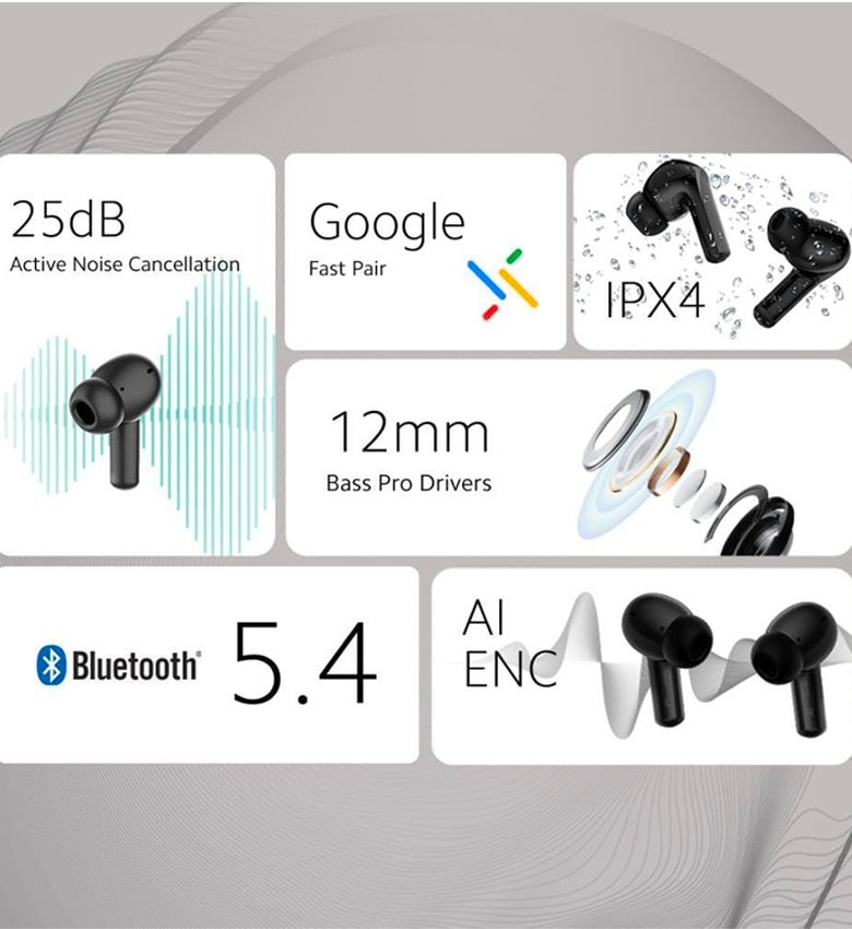 20 Hz-24 KHz 25 dB à 2 kHz Trois modes (Suppression du bruit/Transparence/Désactivé)
