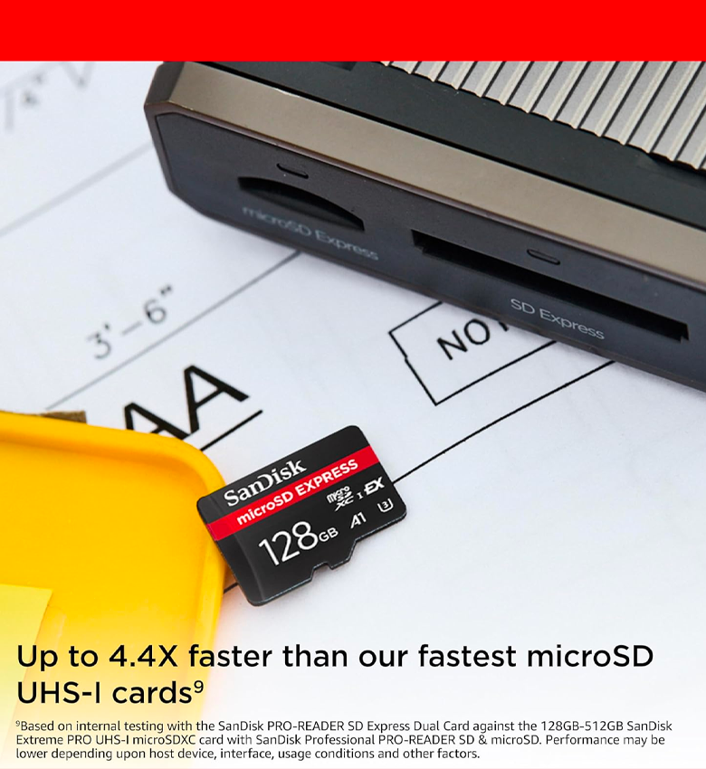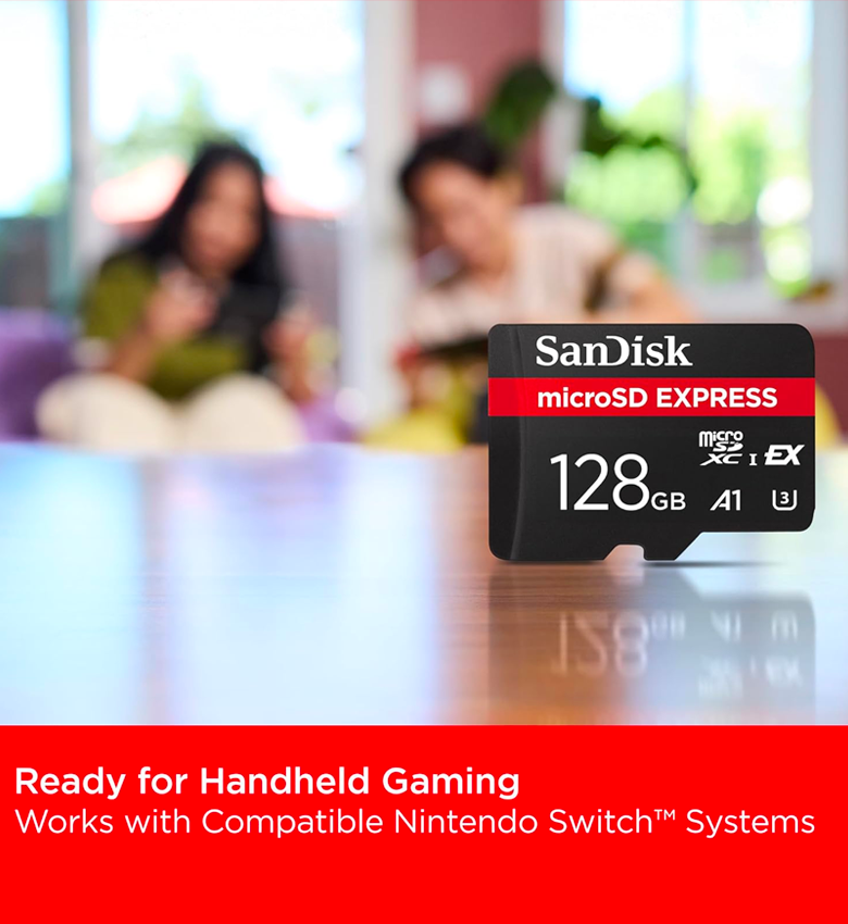 SanDisk MicroSD Express, 128 Go Carte Mémoire, Vitesse de Lecture/Écriture Jusqu'à 880/480 Mo/s, 4,4 Fois Plus Rapide Que Nos Cartes Class 10, U3 - Compatible Nintendo Switch 2