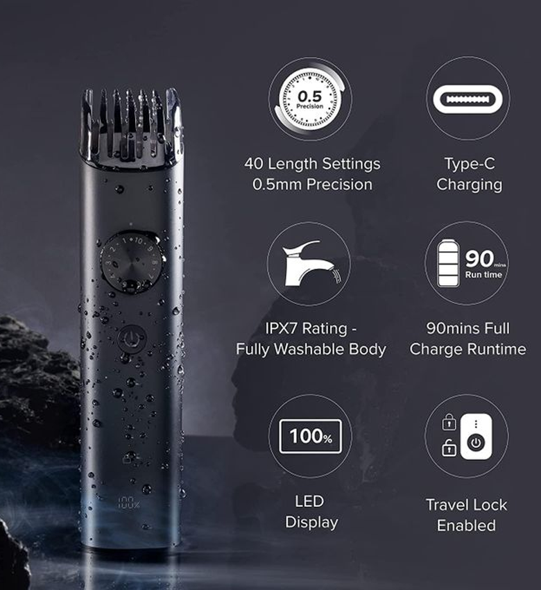 Tondeuse Multifonction Xiaomi Grooming Kit Pro - Kit de Rasage 5-en-1 Homme - Autonomie 90 min - Charge Rapide USB-C - Étanche IPX7 - 40 Réglages de Hauteur - Pour Barbe, Cheveux et Corps - Design Premium Noir - Tondeuse Précision & Nez
