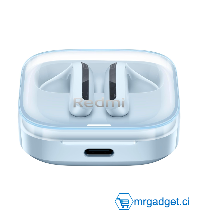 Xiaomi Redmi Buds 6 Active Écouteurs Intra-Auriculaires, Bluetooth 5.4, jusqu'à 30 Heures d'autonomie, Pilote Dynamique 14,2 mm, Protection IPX4, réduction du Bruit des appels, Bleu Transparent