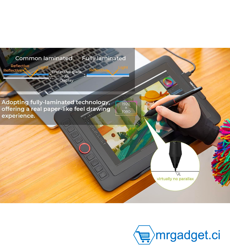 - Ecran Entièrement Laminé et Riche en Couleurs - l’écran et le verre de Artist 12 Pro est combiné par la technologie la plus avancée “Entièrement Laminé”, presque pas de parallaxe pour dessiner, vous offre un environnement de travail exempt de distraction. Associé avec une superbe précision des couleurs de 72% NTSC, il offre des couleurs riches, des images éclatantes et des détails éblouissants.