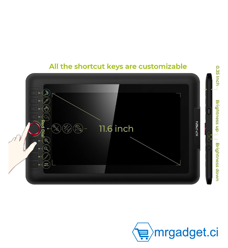 - Interface Créative avec Roulette Rouge et 8 Touches de Raccourcis - Par rapport à la barre tactile de l’Artist 12 en version standard, l’Artist 12 Pro est conçu avec une roulette rouge personnalisable, beaucoup plus pratique à utiliser qu’une barre tactile. Equippée aussi de 8 touches de raccourcis tout personnalisable, vous permettent d’améliorer votre flux de travail.